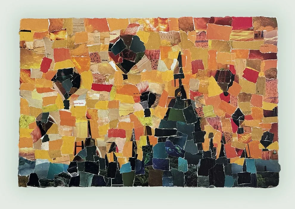 Bagan, Myanmar - Personal Project, Handmade Mosaic using torn tiles from National Geographic magazine - 61cm x 39cm - 2025